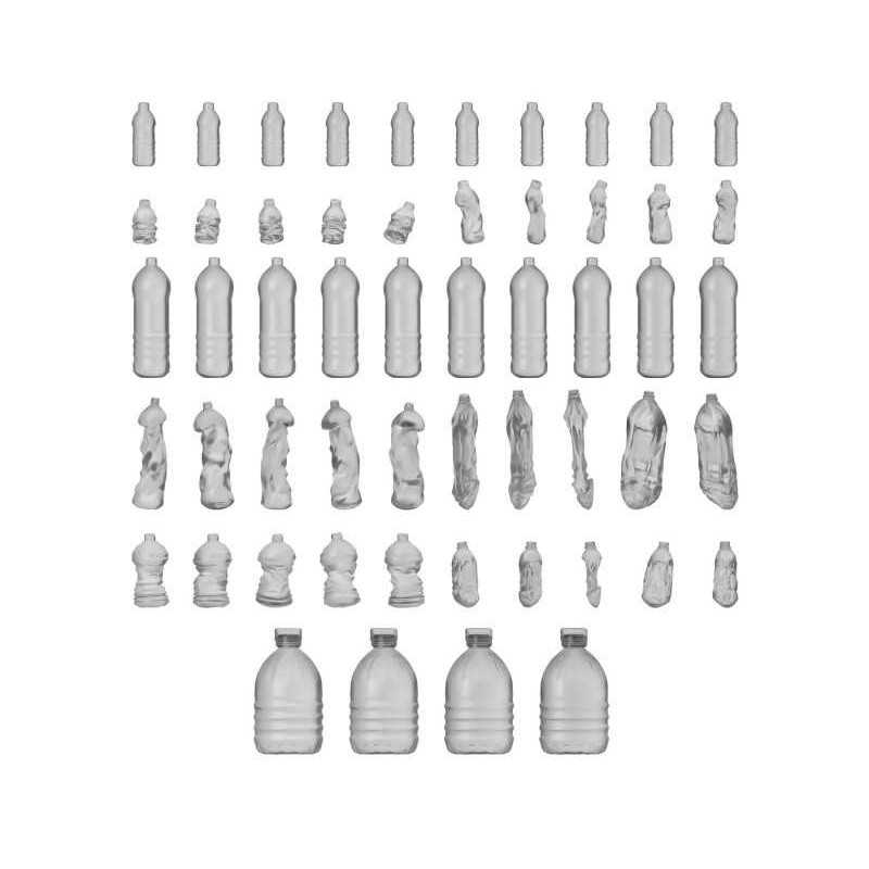 Each set includes 54 x water bottles in different shapes in transparant resin.