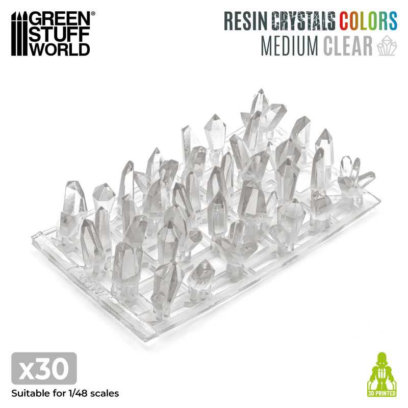 Decorate the bases of your miniatures, dioramas, and other scenery elements with these amazing clear resin crystals to give them a unique, customized look that will stand out. These crystals are made of high-quality 3D resin, which gives them a solid and detailed structure, ideal for adding realism to your hobby projects. Varnished with epoxy varnish ensures a long-lasting and spectacular shine and excellent resistance to bumps, scratches, and other wear and tear from regular use.