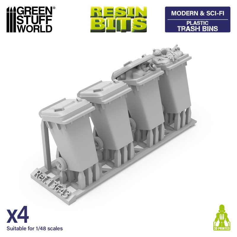 Printed Plastic Trash Bins with wheels (pack x 4)