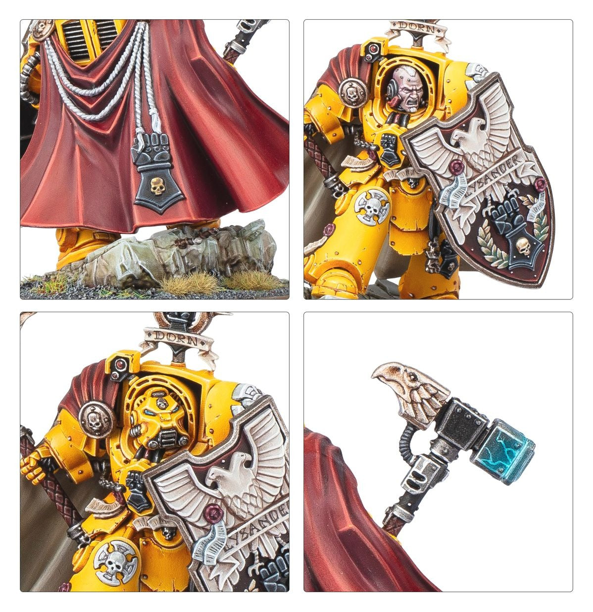 This multipart plastic kit builds Darnath Lysander, a legendary Imperial Fists warrior for your Space Marines armies in games of Warhammer 40,000. Clad in a sturdy suit of Terminator armour and equipped with his custom storm shield, Rampart, Lysander wades through incoming firepower before unleashing devastating attacks with his thunder hammer, the Fist of Dorn. He's ideal for leading your force to victory on the tabletop and makes for an excellent painting challenge. Lysander comes with a choice of two heads – helmeted or bare.