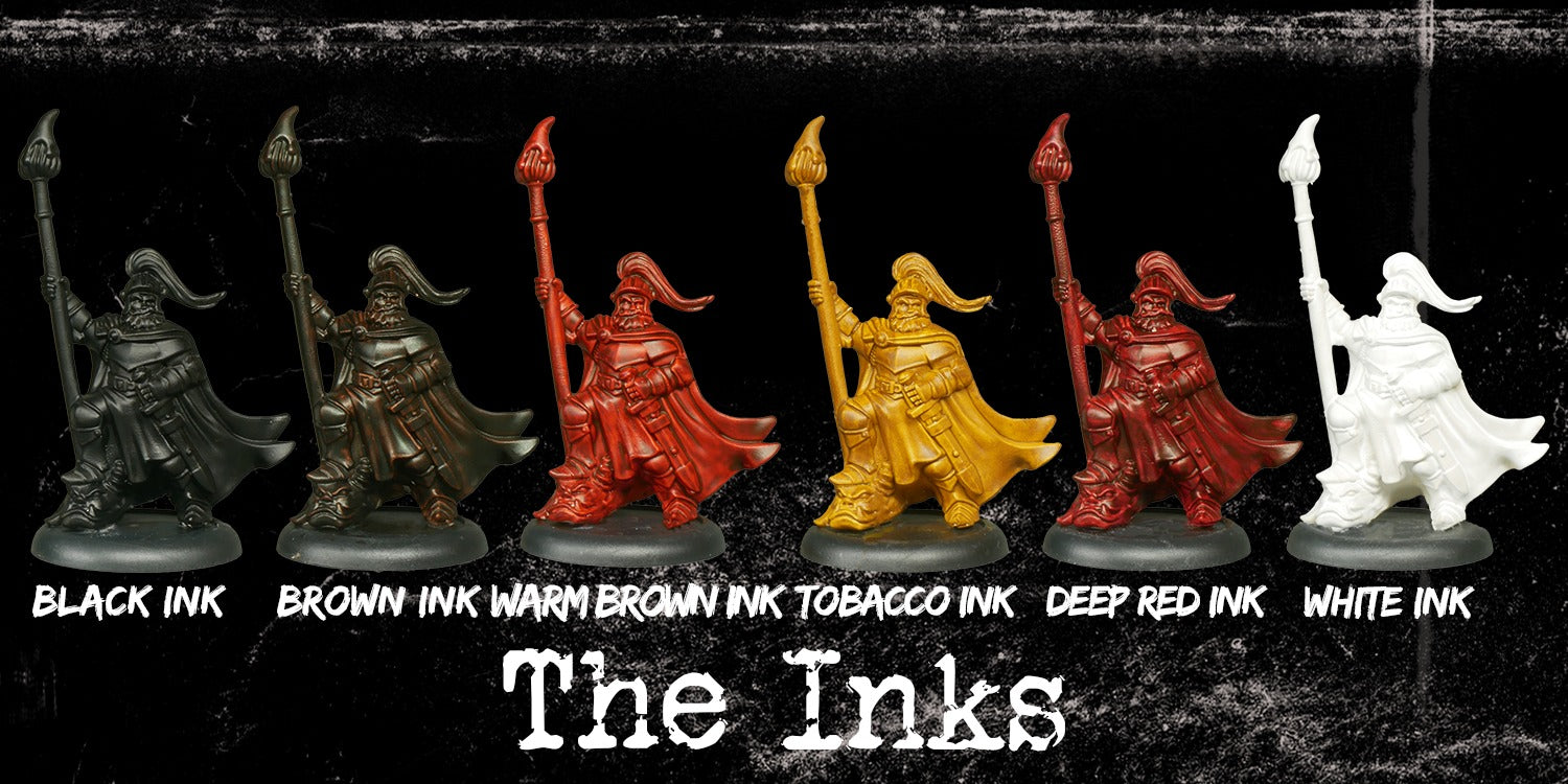 The Inks - brand new paint type to our range, inks work similar to washes with a few key differences – inks are more fluid than washes, and tend to cover more evenly. These 6 new inks are perfect for tinting colors, intense shading, and even weathering!