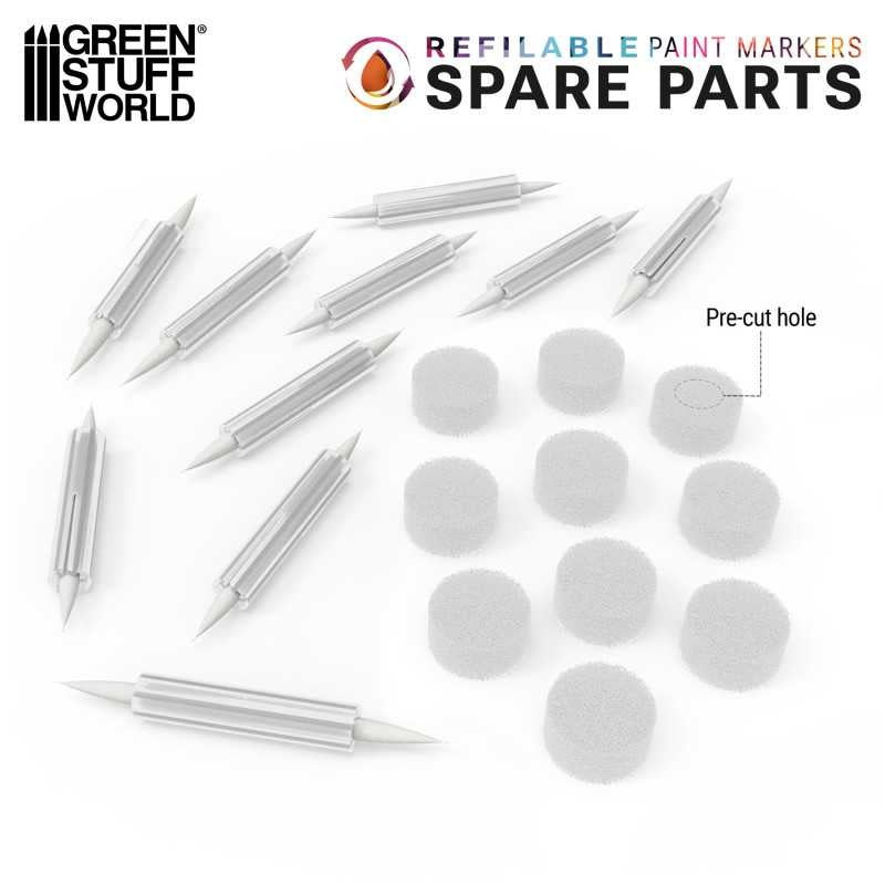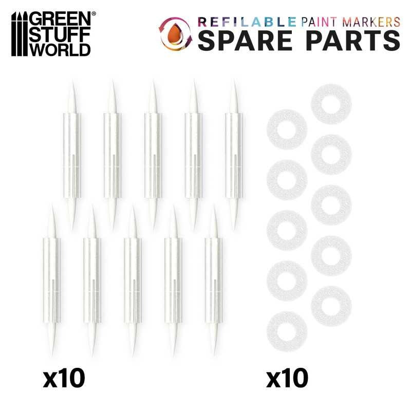 The tip refill pack is the perfect solution for extending the life of your refillable markers and keeping them always ready to paint. It includes 10 tips, 10 internal sponges, and 10 adapters, allowing you to replace parts worn out by intensive use or simply prepare additional markers in different colors.