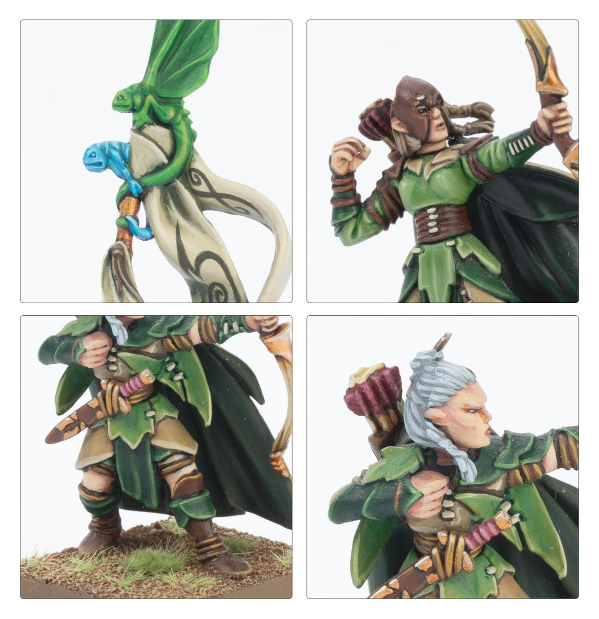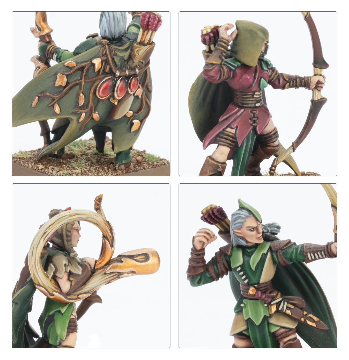 This boxed set builds a solid core of a Wood Elf Realms army for use in games of Warhammer: The Old World. Wild Riders and Sisters of the Thorn – elite cavalry – lead the charge, while specialist Wildwood Rangers and spear-wielding Eternal Guard act as shock troops. A sizable unit of Glade Guard wielding Asrai longbows supports the rest of the army.