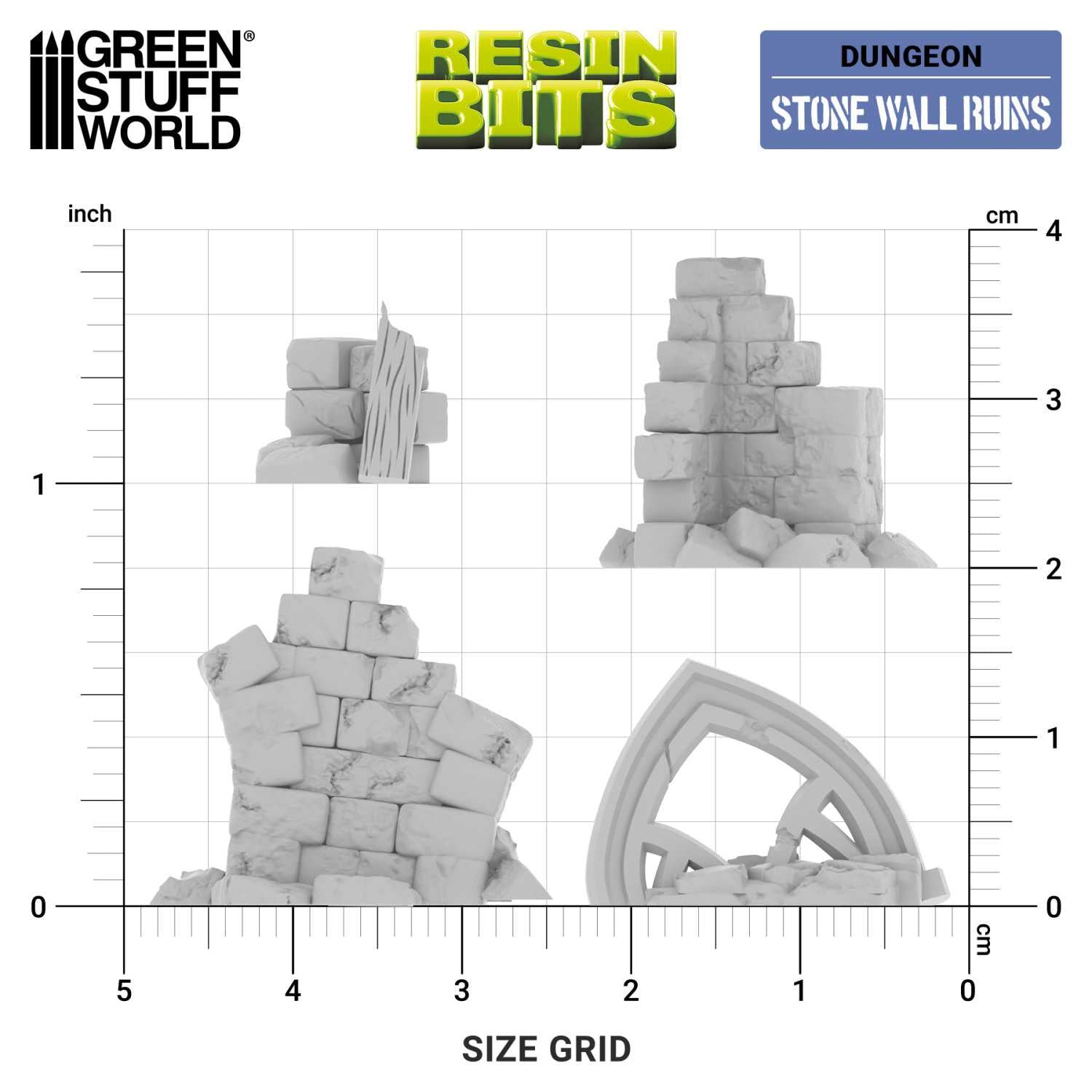 Their manufacture in high-definition resin allows any type of painting technique to be applied for realism, such as dry brushing or earth-tone washes to highlight every crack. Integrate them into any setting that requires a touch of desolation, antiquity, the passage of time, or a fantasy battle. The set includes a wide variety of shapes, such as wall corners that hold their form or Gothic arches among the fallen stones of the walls.