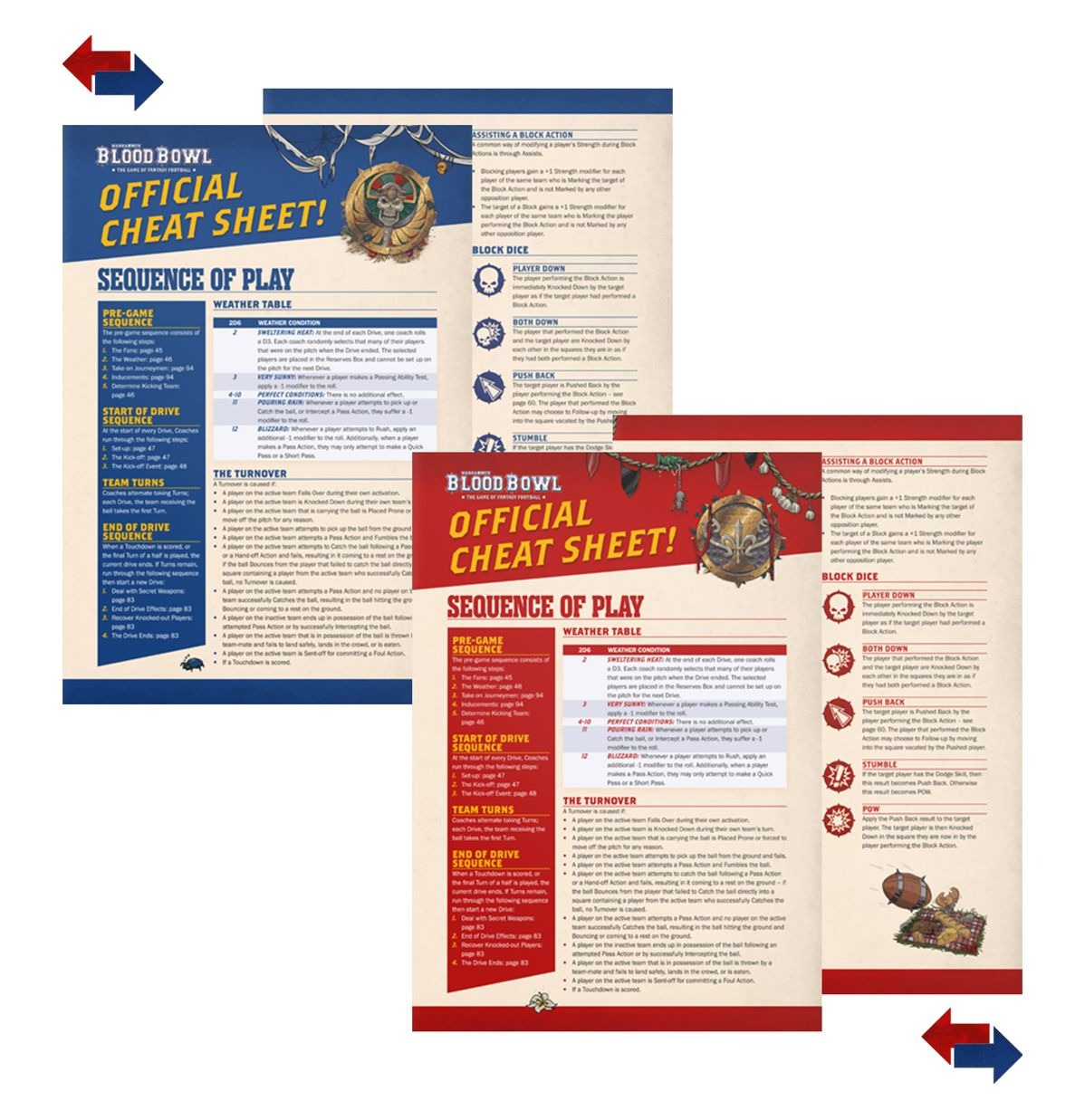 Blood Bowl is the game of fantasy football set in a version of the Old World, where sports mayhem is not only tolerated, but encouraged. This boxed set casts you as the coach of a team of Tomb Kings or Bretonnian players who battle in grand stadiums for glory, gold, and the entertainment of devoted hordes of cheering fans!