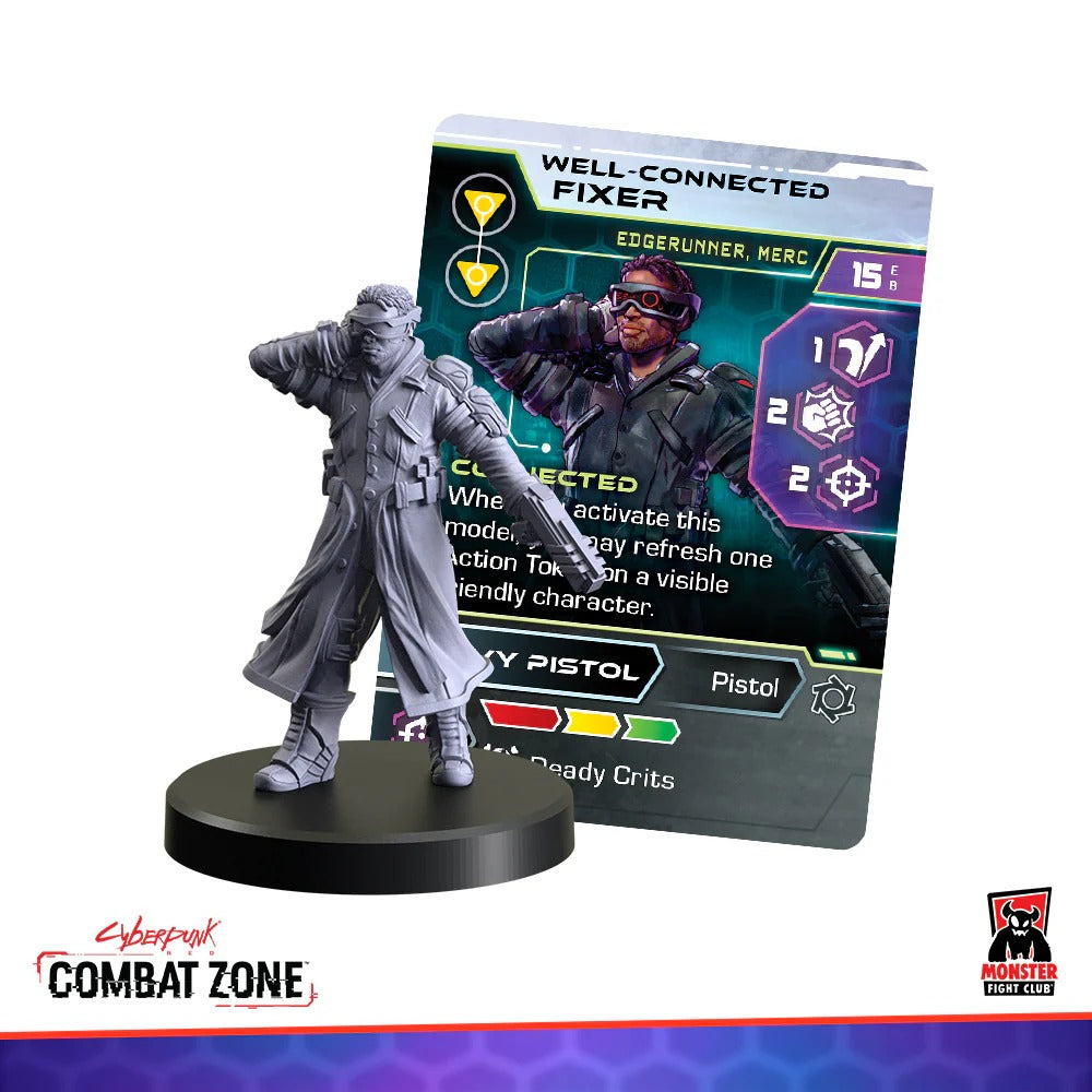 This box set includes all the miniatures and cards you need to field a complete Edgerunners 1 starter gang in your games of Combat Zone!