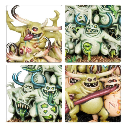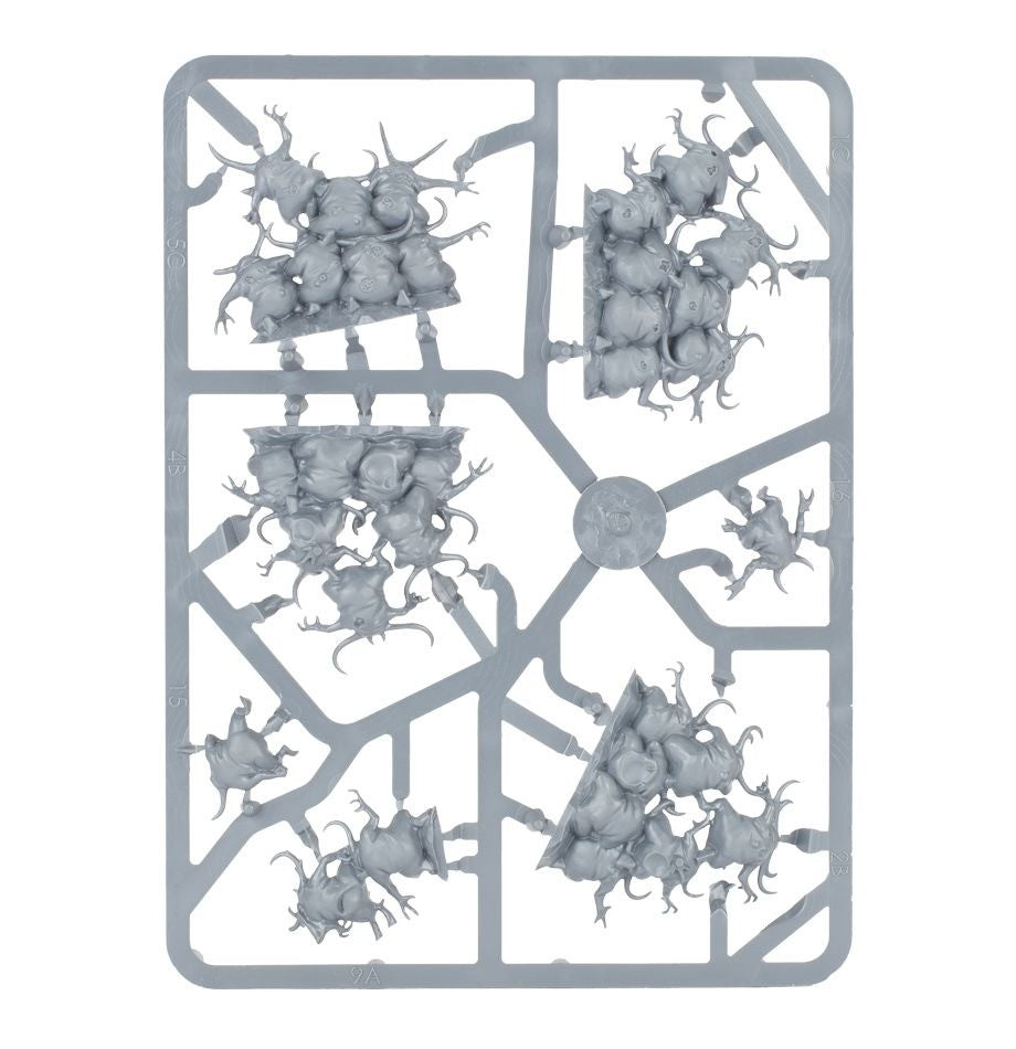 This kit contains – quite literally – stacks of Nurglings. In fact, with this kit you can make three tottering towers of them. Every swarm has front, back and middle ranks; each is comprised of wriggling little horned beasts that are saturated in sores, cuts, lumps and opened orifices. They also come in a variety of characterful poses - most of them sickening. Though you can actually make 27 combinations of Nurgling towers, there are loads of individual Nurglings for using on bases for the rest of your army.
