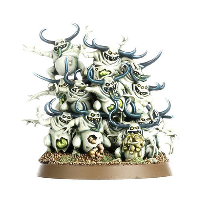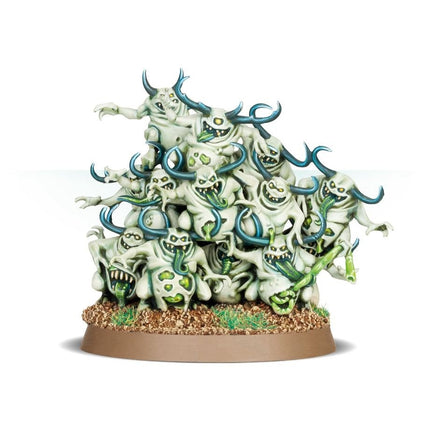 The rotting bowels of the Great Unclean Ones swell with pus and contagion, and within each such swelling there grows a tiny and malevolent Daemon called a Nurgling. As the Nurgling matures it feeds upon the filth of the Great Unclean One and pops out; the very personification of a boil or pustule. Their tiny teeth are as sharp as razors, leaving festering bites upon their victims, but rarely killing them outright – although such an attack can prove the beginning of a long, disease-ridden demise.