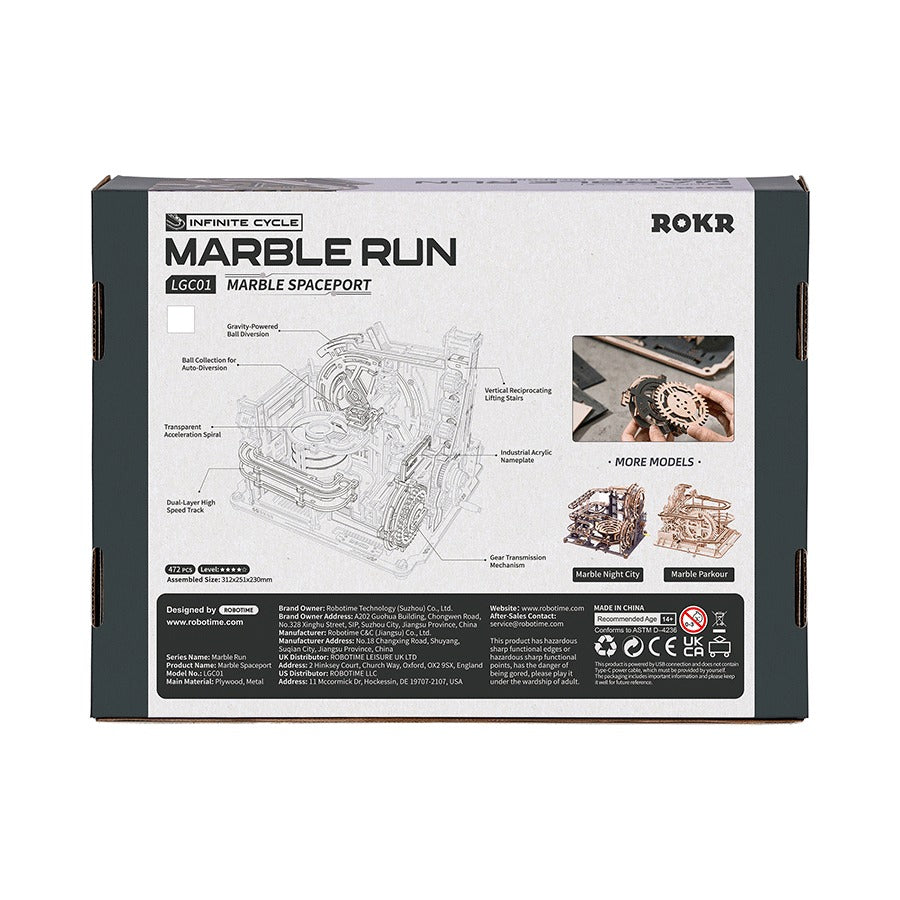 As a product of ROKR Track Maze City, ROKR Marble Spaceport is ready to bring you unprecedented interactive fun and visual enjoyment. Supports both manual and electric drive modes.