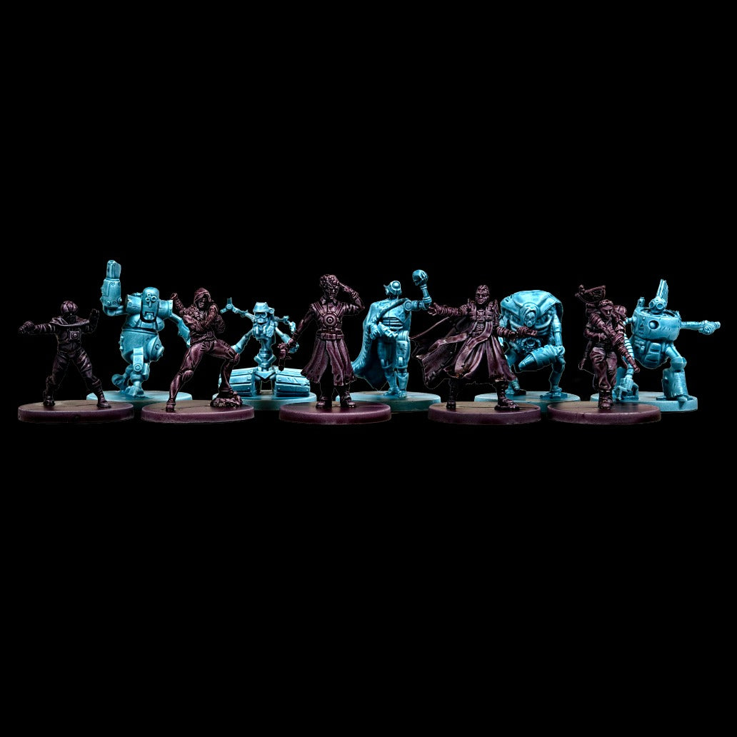 This expansion set expands the game with two more factions, allowing up to four players in a multi-faction mayhem! This boxed set includes ten detailed 32 mm miniatures (five each for the Mechatron Hive and the Nova Cult), cards, tokens, dice, a game mat, cardboard terrain, a ruler, and a scenario booklet including five full scenarios.