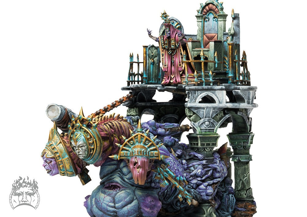 This amorphous mass of former believers has been bound to the will of an Archimandrite, carrying them into battle and fueling their blasphemous sorceries. The Fallen Pulpit excels on the front lines, supporting your troops in combat while providing an incredibly tough launch pad for its essential supporting spells.