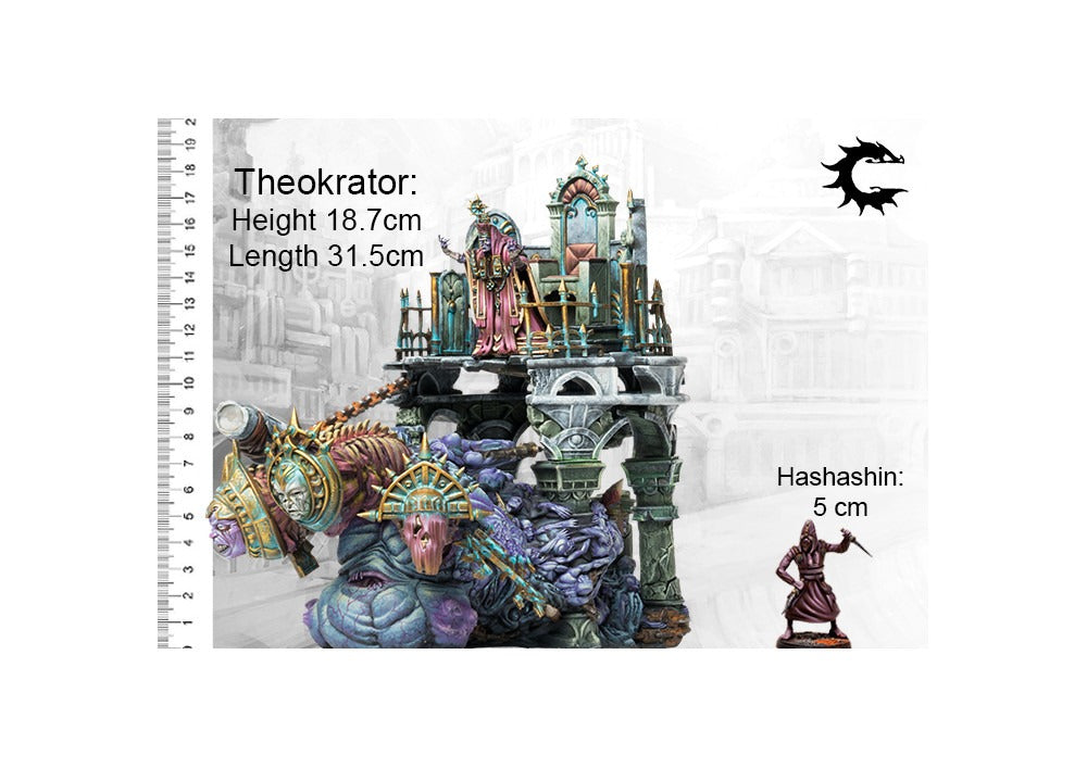 Following the Fall and the Theomachy, a number of Fallen Divinities managed to establish their independence from Hazlia, their once powerless husks bathing in the power that floods from the Pyre to regain a small fraction of their previous might. A few, however, have fallen to the relentless aggression of the Final Creed, who see these apostate Divinities as an affront to Hazlia's own standing as the Pantokrator. The members of the Fallen Creed who succeed in laying low one of these fearsome foes is awarded with the title of Theokrator, Master of Divinity, and granted absolute authority over the bound fallen divinity. Reduced by mighty rituals to a weakened corrupted form, these fallen divinities are often brought to battle where their power is drained to empower their Masters, turning them into unstoppable fonts of blasphemous magic and reducing the battlefield to a channel hole.