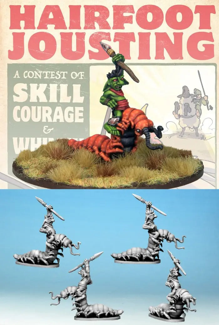 Hairfoot Jousting is a quick and simple tabletop miniatures game in which players seek to lead their teams of three to victory in tournaments or over the course of a season. Play on some of the most famous pitches to grace the sport, such as Baker's Run, The Puddles, and Barrel Bottom, each with their own special challenges. Point your jousters in the direction of their opponents and hope their mounts don't have their own ideas! In Hairfoot Jousting, sportsmanship and a sense of humour are as valuable as skill or luck – after all, it's joust a bit of fun.