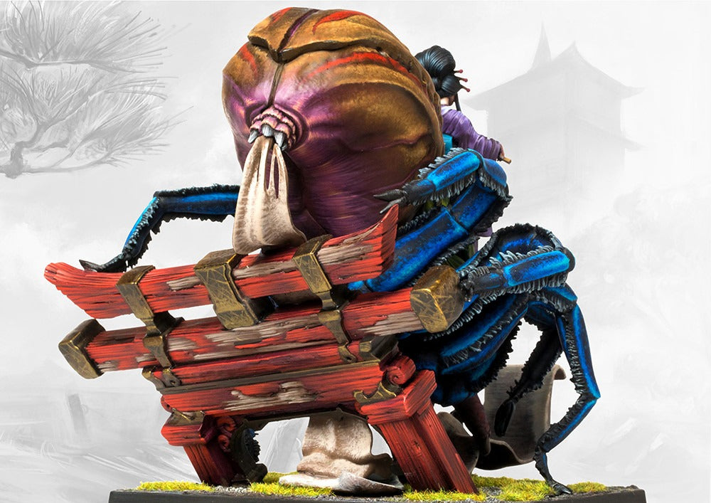 Jorogumo are creatures of mystery even among the Yoroni. Some claim them to be kin to the Kitsune and point to their refinement and beauty and power over dreams and song. Others believe them to be Yoroni attuned to Earth and Water; a confluence that creates the para element of poison and explains their exalted nature. Others still believe them to be amongst the most Enlightened of Yoroni, capable of discerning reality for what it really is, a web of dream and illusion woven by Balance to keep Destruction asleep who have allied with the spirits that perform the weaving itself. Whatever the case might be, none can deny their power, whether it be the entrancing performance of the Geisha or the reality altering sorcery of the Mahotsu. Especially when combined with the terrifying power of of their mount (or is it their body?). Either way, these creatures are a dream to fight alongside and a nightmare to face on the battlefield.